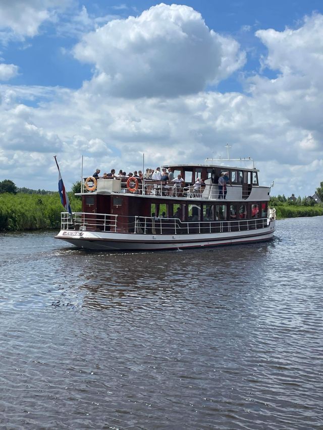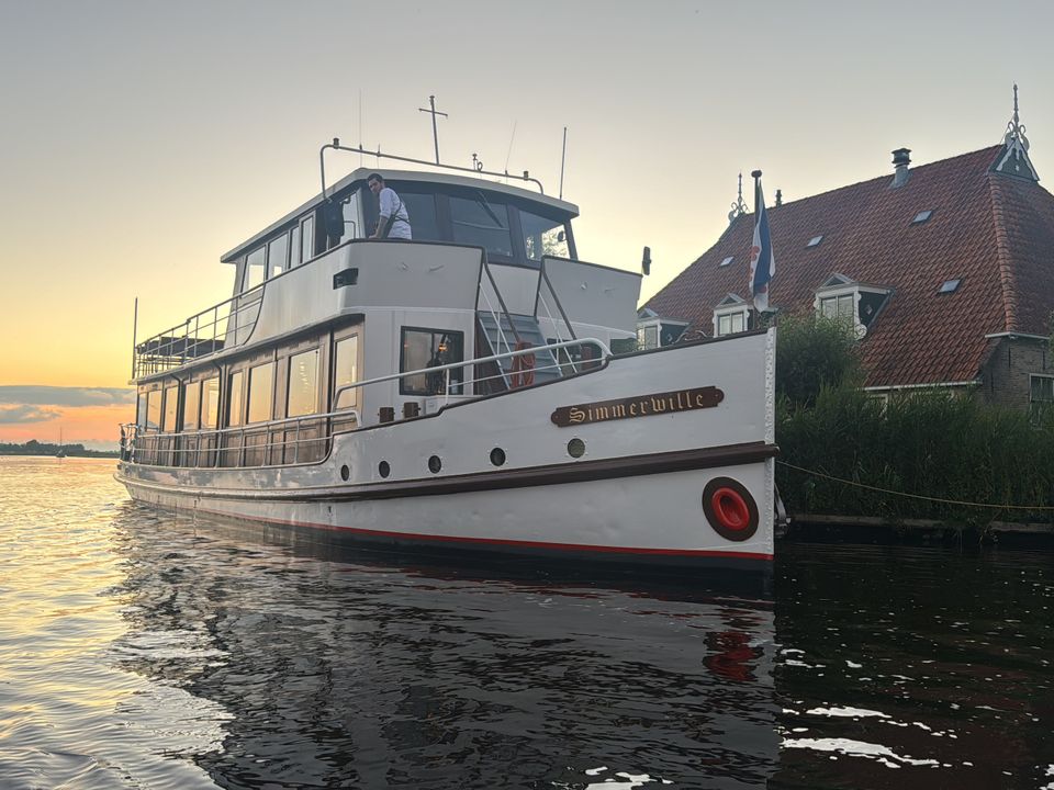 Fahren Sie mit dem klassischen Salonboot De Simmerwille durch die wunderschöne friesische Landschaft.