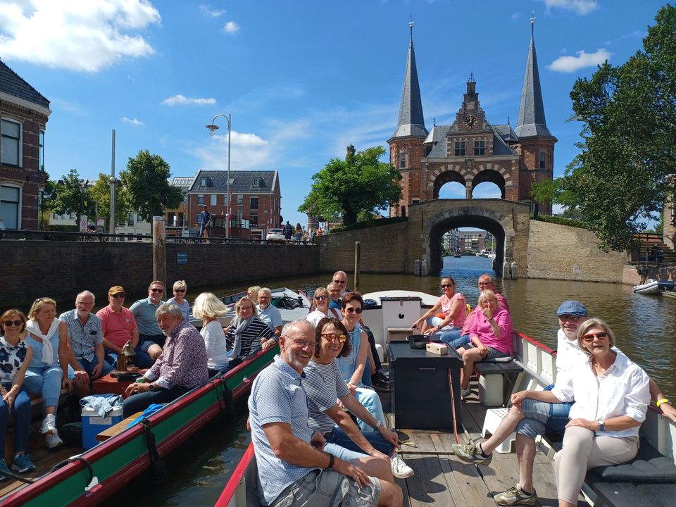 Fahren Sie mit einem offenen Boot (Praam) auf den Stadtkanälen in und um Sneek. Aufgrund der geringen Durchfahrtshöhe kann Ihnen Grachtenrondvaart Sneek die schönsten und intimsten Orte in Sneek zeigen. Der Kapitän spricht über die reiche Geschichte der Stadt. Sie kommen am Wahrzeichen von Sneek vorbei: dem Waterpoort. Die Kreuzfahrt dauert knapp eine Stunde.