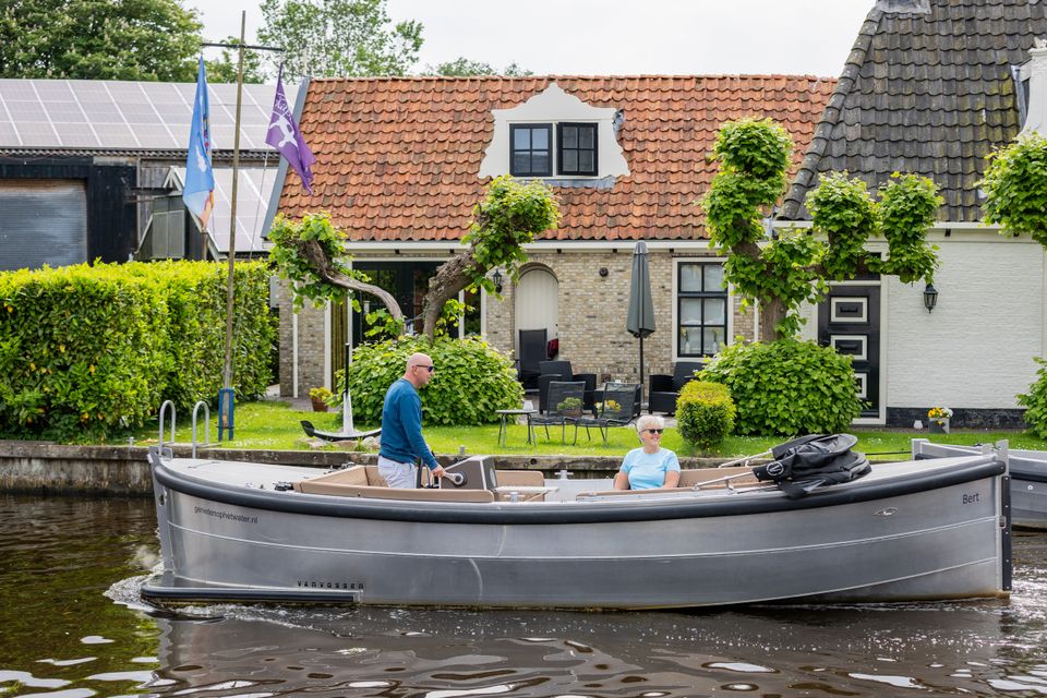 Die Van Vossen Sloep 700 ist eine robuste Aluminium-Schaluppe, die Sie das ganze Jahr über in Heeg mieten können. Geeignet für 2 bis 10 Personen, ist diese Schaluppe ideal für einen entspannten Tag auf dem friesischen Wasser, unabhängig von der Jahreszeit.