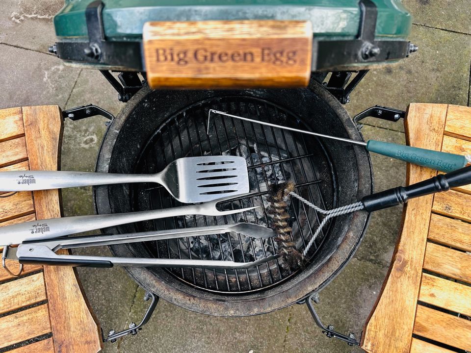 Die Nutzung des Big Green Egg Grills erfolgt auf eigene Gefahr. Das Starterpaket enthält Holzkohle und Anzünder für einige Grillvorgänge. Der Big Green Egg ist für Gäste mit Erfahrung im Kamado-Grillen geeignet.