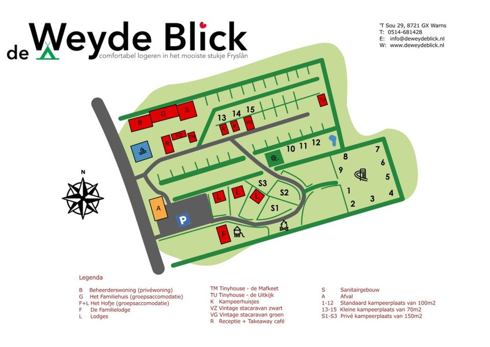 De Weyde Blick liegt wunderschön inmitten der Nationallandschaft Südwestfriesland. Der Park mit verschiedenen Ferienhäusern für Gruppen von 4 bis 28 Personen liegt am Rande des Dorfes Warns, nur einen Steinwurf vom gemütlichen Elfstedenstad Stavoren und dem IJsselmeer entfernt. Der kleinste Fischereihafen Europas in Laaksum liegt 2 Kilometer vom Weyde Blick entfernt.