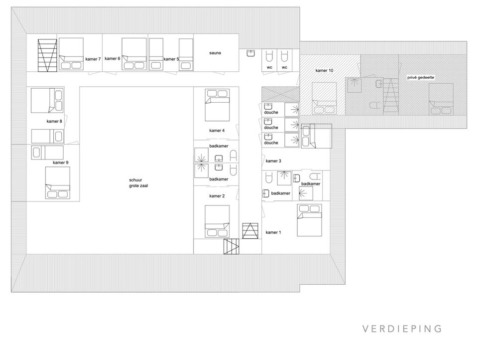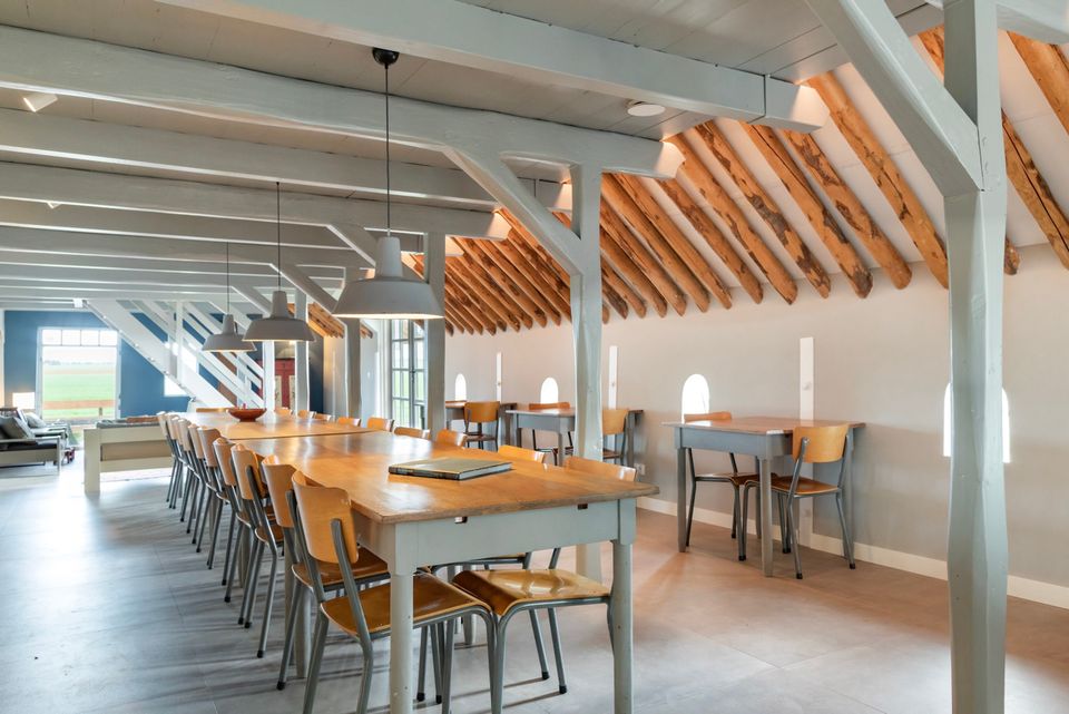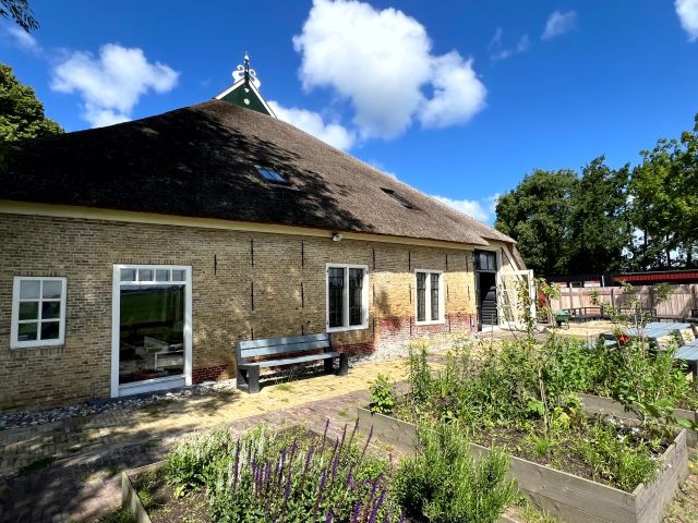 Nynke's Pleats bietet geräumige Gruppenunterkünfte für bis zu 20 Personen, mit einem schönen großen Saal mit Bar im Erdgeschoss und einem geräumigen Stall, der als Wohnzimmer mit mehreren Sitzbereichen eingerichtet ist. Die vielen Fenstertüren ermöglichen den Zugang zu den Terrassen rund um den Hof, der Blumenwiese und dem Obstgarten, sodass Sie die Natur und die Aussicht optimal genießen können. Im obersten Stockwerk der reetgedeckten Scheune befinden sich 9 komfortable Schlafzimmer, teilweise mit eigenem Bad, teilweise mit luxuriösen Gemeinschaftssanitäranlagen und einer Sauna.