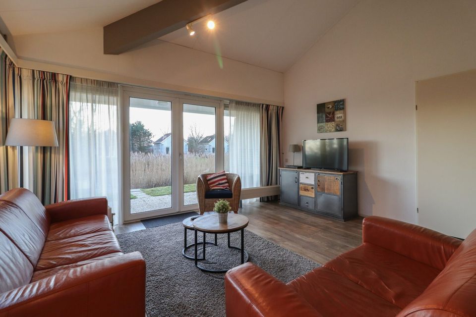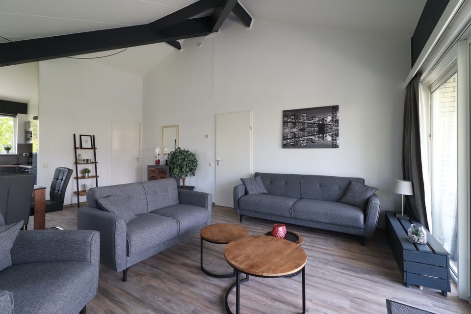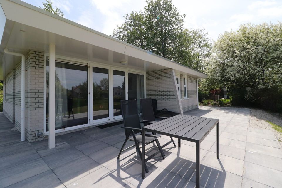 Dieser Bugalow „Star“ ist für sechs Personen geeignet und liegt komplett im Erdgeschoss. Der Bungalow verfügt über 3 Schlafzimmer mit bequemen Boxspringbetten. Das Hauptschlafzimmer verfügt über ein eigenes Badezimmer mit Dusche und Waschbecken. Außerdem gibt es ein zweites Badezimmer mit Dusche und WC. Und es gibt eine dritte Toilette. Der Bungalow verfügt über eine neu installierte Küche mit Kochinsel, Geschirrspüler, Kombi-Mikrowelle und vielem mehr. Im Hauswirtschaftsraum stehen Ihnen eine Waschmaschine und ein Trockner zur Verfügung. Durch zwei französische Türen haben Sie Zugang zur Außenterrasse und zum großen Garten.