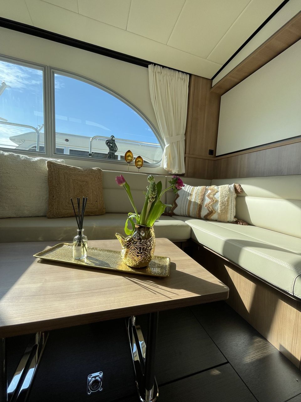 Diese Sechs-Personen-Yacht ist eine wunderbare Yacht für die Erkundung der friesischen Gewässer. An Bord gibt es sechs Kabinen (Schiffsstahl für Schlafzimmer). Zwei davon verfügen über ein Doppelbett, Bad und WC. Das dritte Schlafzimmer verfügt über zwei Einzelbetten und viel Platz im Kleiderschrank. Diese Yacht ist eine robuste Yacht und mit frischen und leichten Materialien ausgestattet. Es gibt einen Wohnbereich, einen Essbereich und eine gut ausgestattete Küche mit einer Nespresso-Maschine. Der Fernseher im Salon verfügt über Apple TV. Das Achterdeck besteht aus Teakholz und bietet auf der festen Sitzbank mit bequemen Kissen ausreichend Sitzgelegenheiten. Das Achterdeck kann mit dem Cabrio-Zelt komplett geschlossen oder geöffnet werden. Sie können auch das Achterdeck beheizen! Die Yachten sind sowohl mit Bug- als auch Heckstrahlrudern ausgestattet.