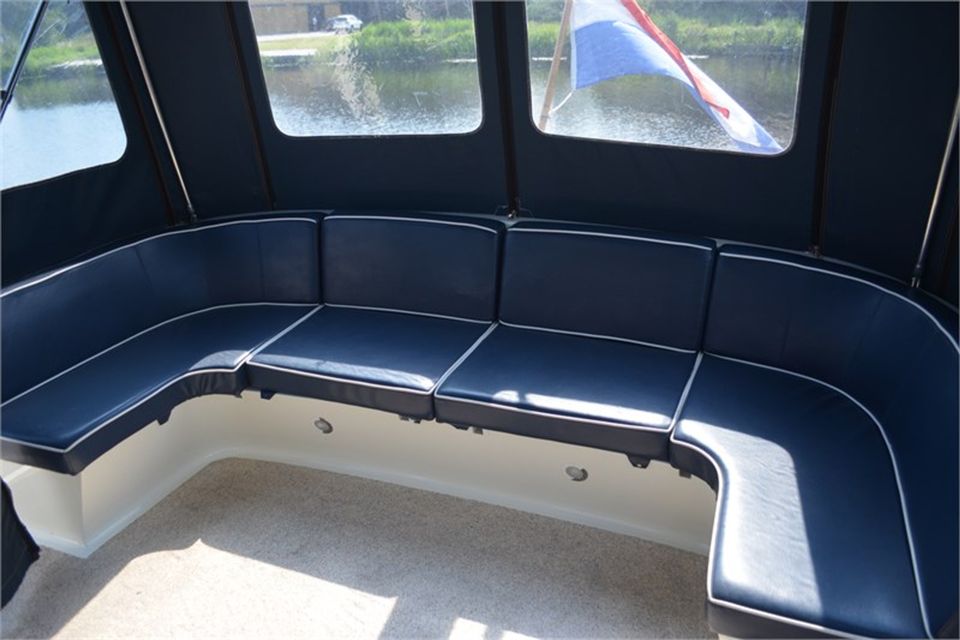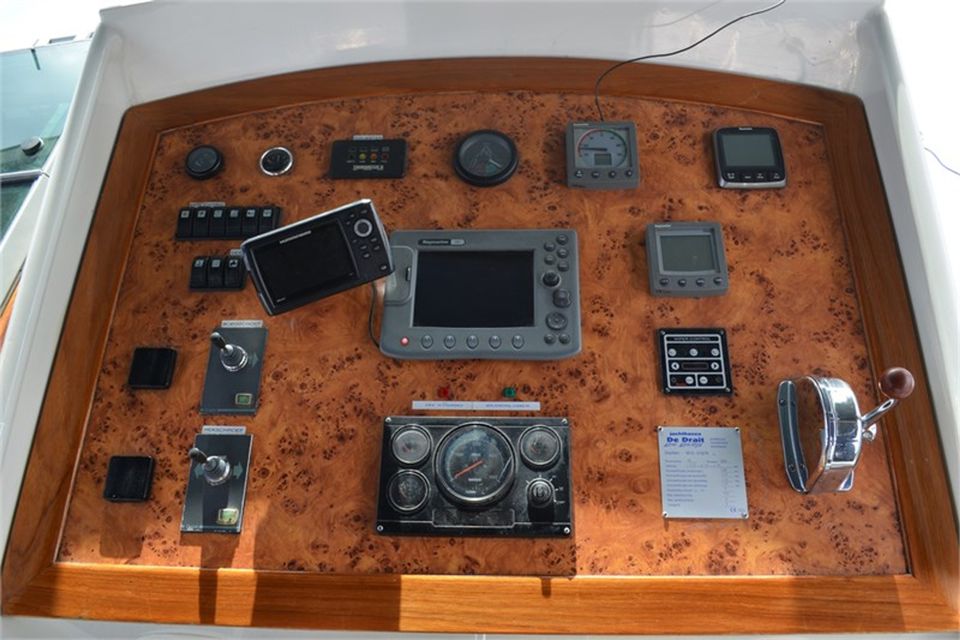 Diese Drait Yacht ist ein geräumiges Boot mit einer Kapazität für 12 Personen. Sehr gut geeignet für eine Familie oder eine Gruppe von Freunden. Sehen Sie sich die Karte für den Grundriss dieser Motoryacht an. Das Boot verfügt über ein geräumiges Achterdeck mit Sofa und Terrassenmöbeln, wo Sie bequem mit einer großen Gruppe sitzen können. Das Achterdeck ist komplett mit einem großen Zelt umschlossen. Der Steuerstand ist komplett mit der notwendigen Ausrüstung ausgestattet. Das Boot ist mit Bug- und Heckstrahlruder leicht zu manövrieren.