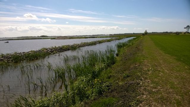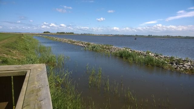 Vanaf hier kijkt u uit over polder De Samenvoeging. Soms hier zitten grote groepen brandganzen. Kemphanen worden hier ook wel eens gezien.
