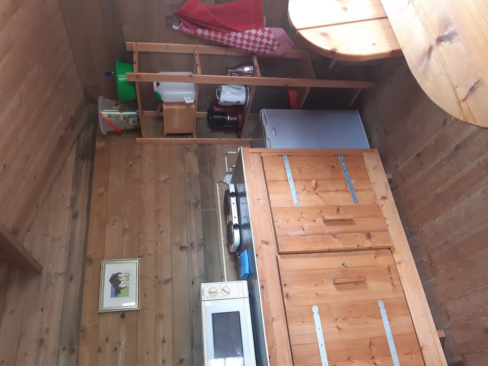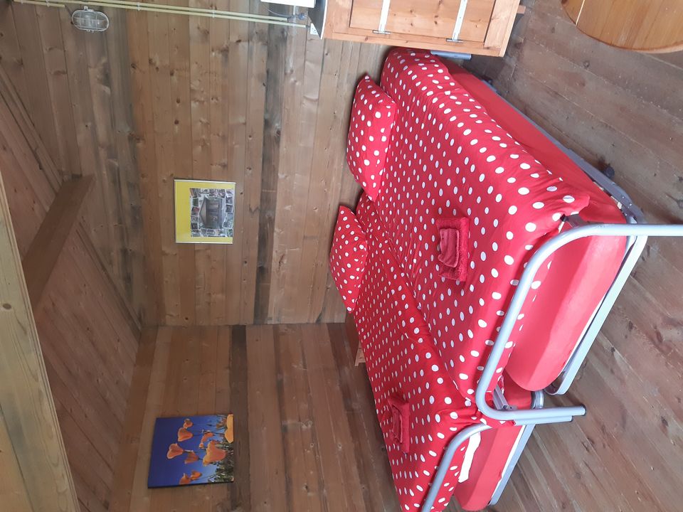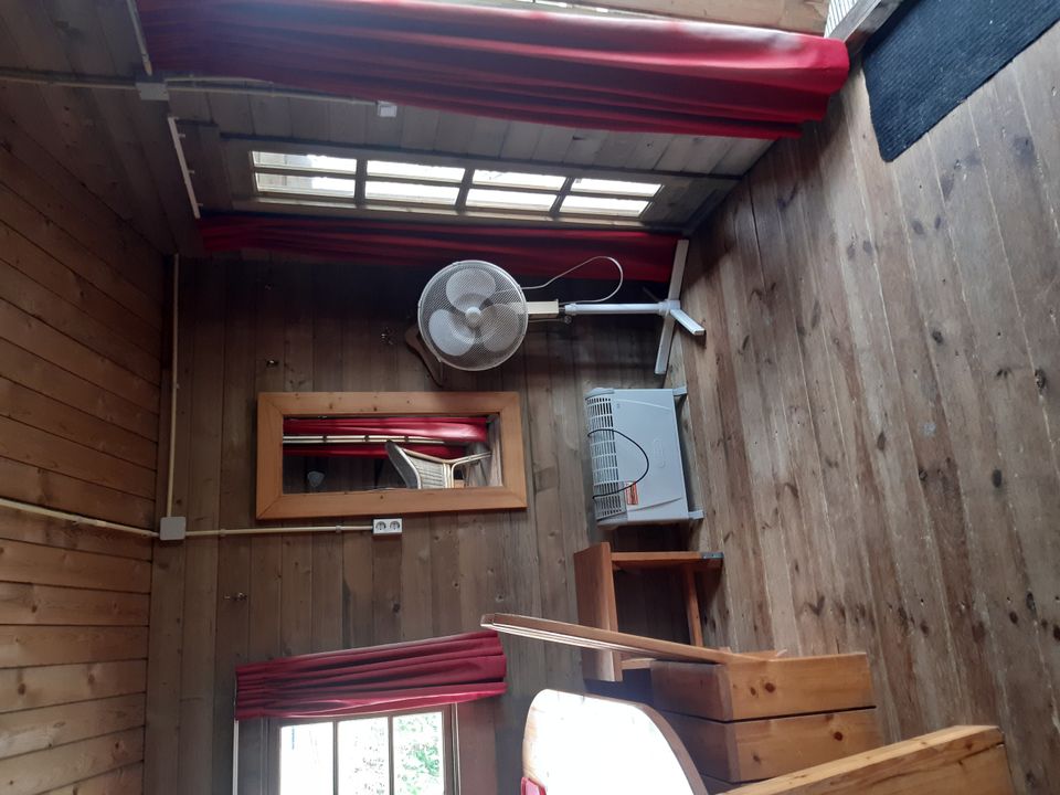 Dieses gemütliche Blockhaus befindet sich an einem wunderschönen Ort in der Nähe des Rosengartens! Hier können Sie die Aussicht, die Ruhe und die untergehende Sonne genießen. Das Blockhaus ist einfach eingerichtet, mit einer Sitzecke mit Tisch und Stühlen und mit vier Einzelbetten ausgestattet. Das Blockhaus hat keine eigenen Sanitäranlagen, dafür können Sie die Sanitäranlagen des Campingplatzes nutzen.