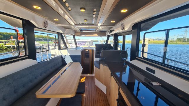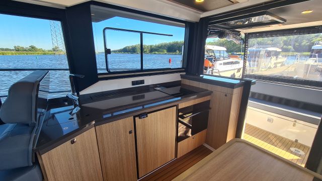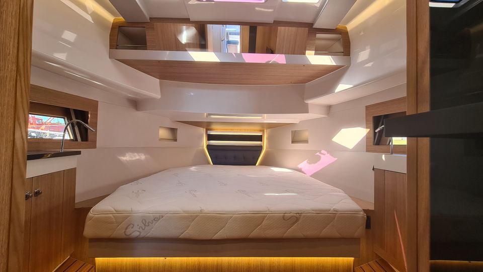 Die Northman 1200 Electric & Solar ist eine elektrische Motoryacht für bis zu sechs Personen, die sowohl umweltfreundlich als auch luxuriös ist. Unter Deck befinden sich drei Kabinen mit Doppelbetten sowie ein separates Badezimmer mit Dusche und WC. Ein Badezimmer ist mit Dusche und Waschbecken, das andere mit elektrischer Toilette und Waschbecken ausgestattet. Die moderne Küche der Northman 1200 Electric verfügt über einen Backofen, ein Induktionskochfeld und eine Nespresso-Kaffeemaschine. Der Wohnbereich befindet sich auf dem Oberdeck und bietet vom Salon aus einen herrlichen 360-Grad-Panoramablick.