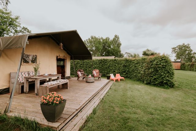 Im Safarizelt „Jenseits von Afrika“ tauchen Sie völlig in die Atmosphäre Afrikas ein, denn dieses Zelt ist im Kolonialstil eingerichtet. Dieses Safarizelt verfügt über ein Doppelbett, eine voll ausgestattete Küche, eine gute Regendusche und eine separate Toilette. An einem kühlen Abend können Sie die schöne Gasheizung nutzen. Vor dem Safarizelt gibt es eine schöne Veranda, auf der Sie draußen essen und die Sonne genießen können. Also ideal!