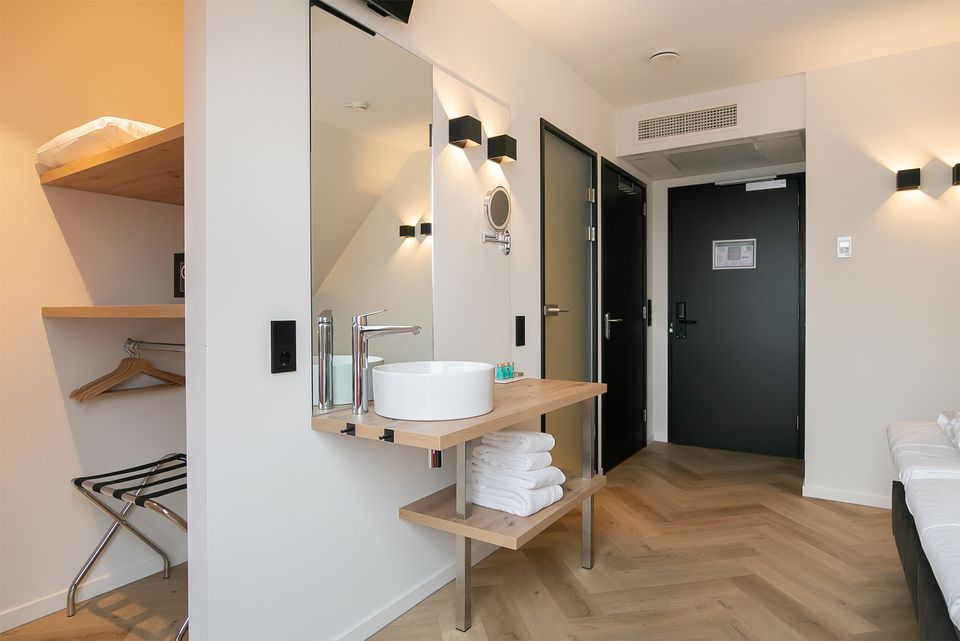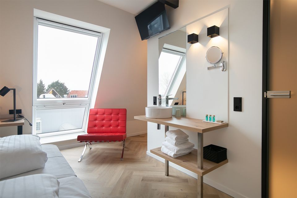Dieses moderne Selbstbedienungshotel befindet sich in einem monumentalen Gebäude mitten im Herzen der friesischen Hansestadt Elfsteden in Bolsward. Aufgrund seiner zentralen Lage in der Provinz Friesland ist Bolsward der perfekte Ausgangspunkt für ein paar Tage in dieser wunderschönen Provinz voller Wasser, Geschichte, Kultur, Natur, Ruhe und Lebendigkeit. Auch Bolsward selbst hat aufgrund seiner reichen Geschichte und seines malerischen Zentrums viel zu bieten. Jedes Jahr startet, kreuzt und endet hier die friesische Rijwiel Elfstedentocht. Start und Ziel sind sogar direkt vor dem Hotel.