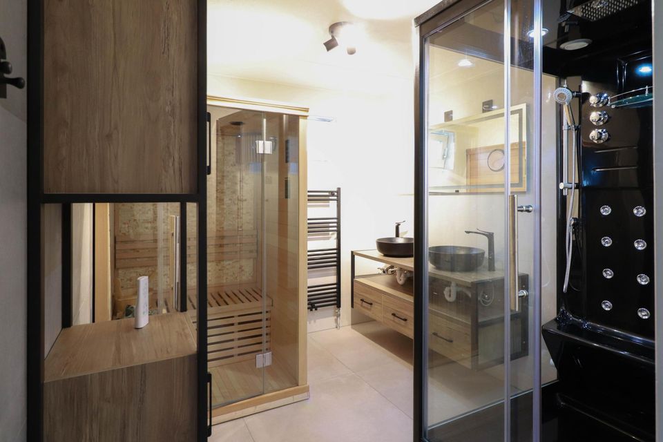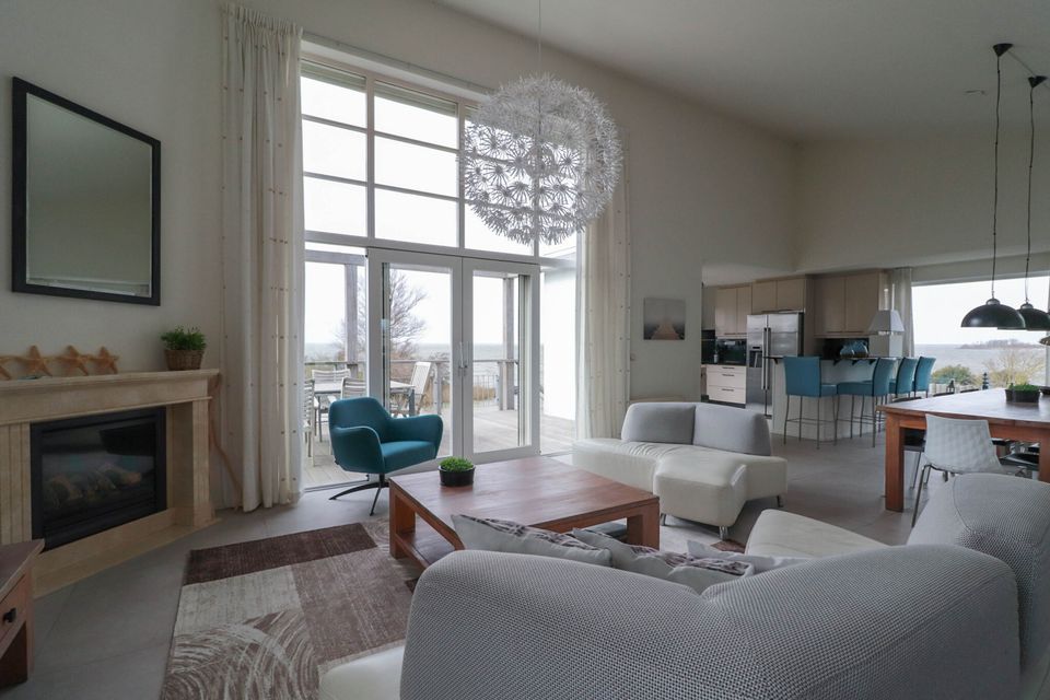 Diese Strandvilla verfügt über ein sehr großes Wohnzimmer mit einer offenen Luxusküche im obersten Stockwerk, wo sich auch eine große Sonnenterrasse befindet und Sie einen wunderschönen Blick über das IJsselmeer haben. Die Villa verfügt über eine eigene Auffahrt, die für zwei Autos geeignet ist. Im Erdgeschoss befinden sich vier Schlafzimmer, ein großes luxuriöses Badezimmer und der Abstellraum. Drei der vier Schlafzimmer haben Terrassentüren zum Garten. In einem der Schlafzimmer; „Das Hauptschlafzimmer“ ist eine freistehende Badewanne und ein Waschbecken. Das luxuriöse Badezimmer verfügt über eine Sauna, ein Doppelwaschbecken und eine Duschkabine mit Düsen und Dampffunktion. Im Abstellraum gibt es eine zentrale Staubsaugeranlage und eine Waschmaschine/Trockner-Kombination.