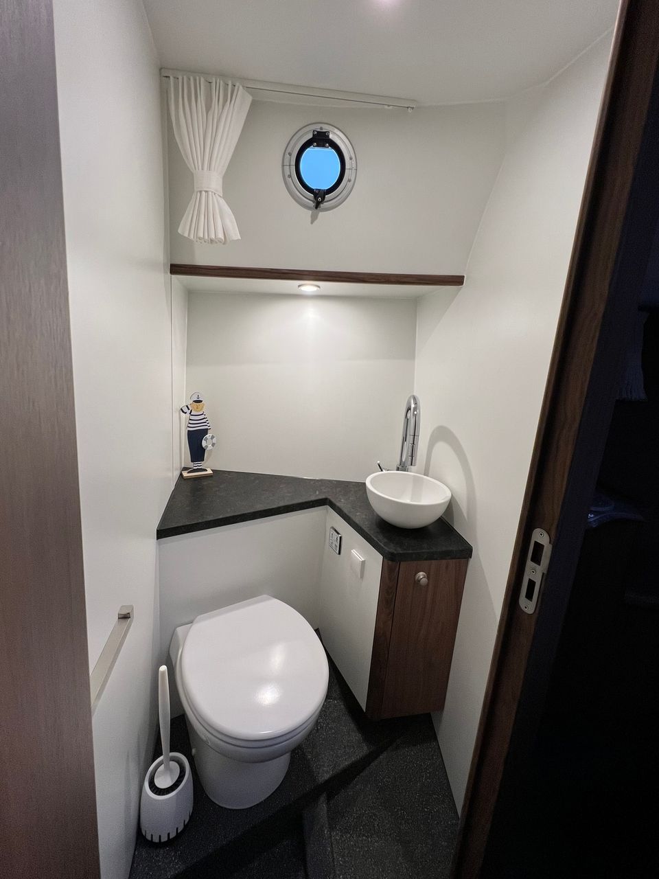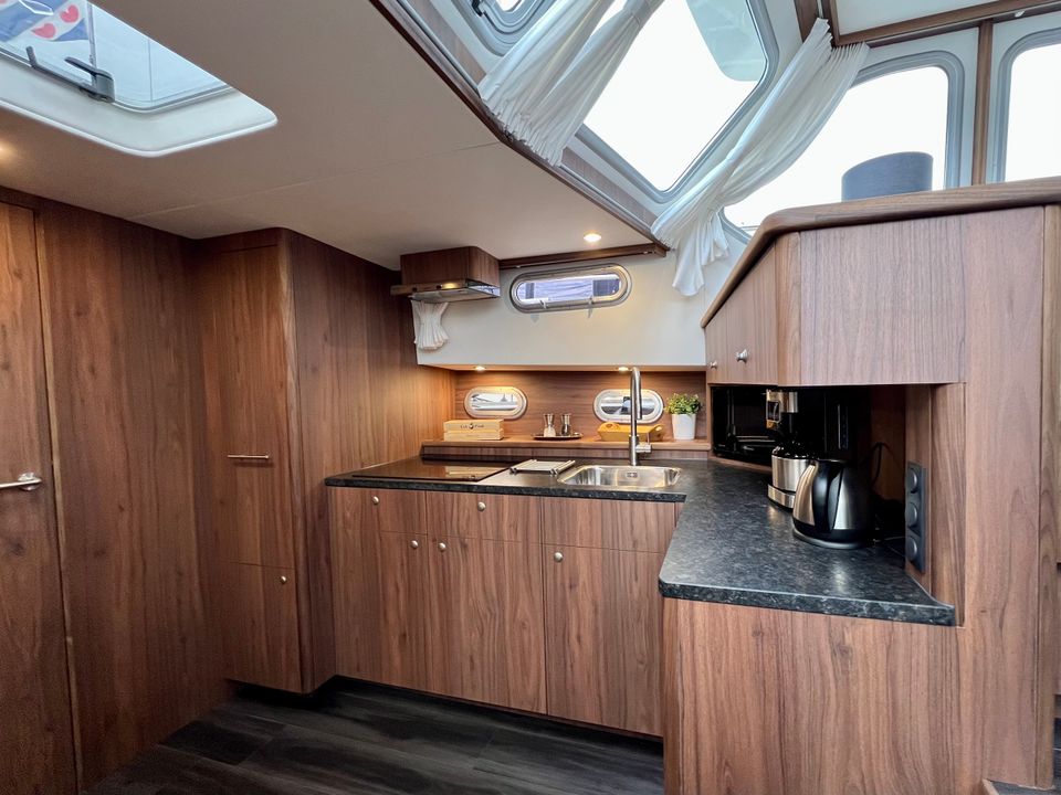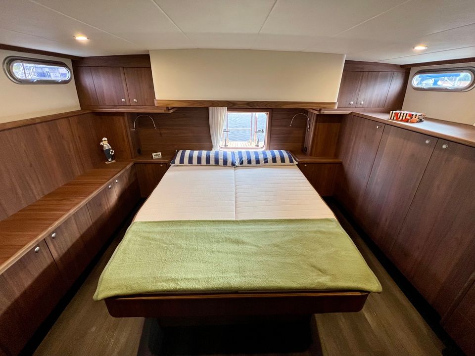 Diese Motoryacht aus dem Jahr 2023 kombiniert eine charakteristische Rumpfform mit modernem Komfort und Luxus für 4 Personen. Durch den Axtbug wurde die Wasserlinie verlängert, was nicht nur die Segeleigenschaften verbessert, sondern auch etwa 5 m³ zusätzlichen Innenraum im Vergleich zu einem Schiff mit herkömmlichem Bug bietet.