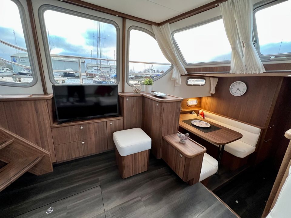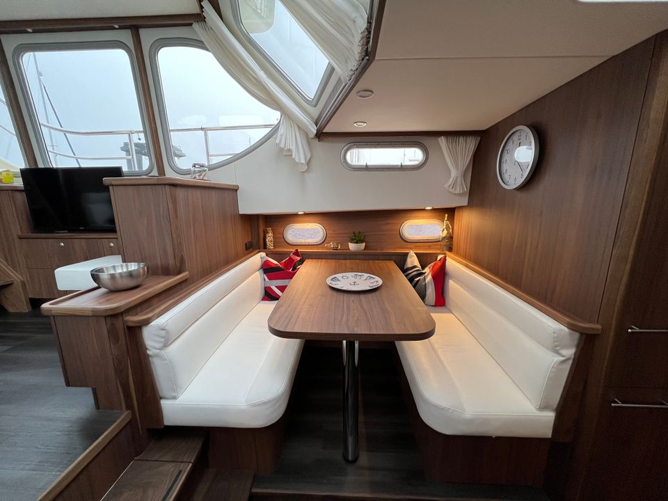 Der Salon verfügt über Doppelverglasung und das gesamte Schiff hat eine Fußbodenheizung – angenehm zu jeder Jahreszeit.