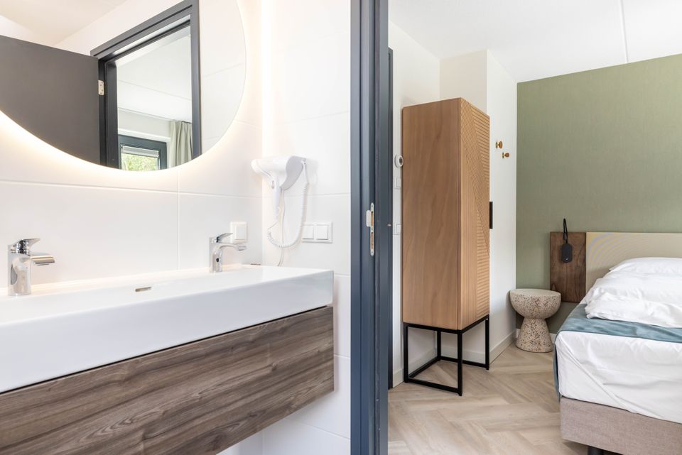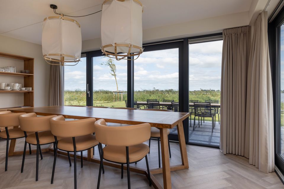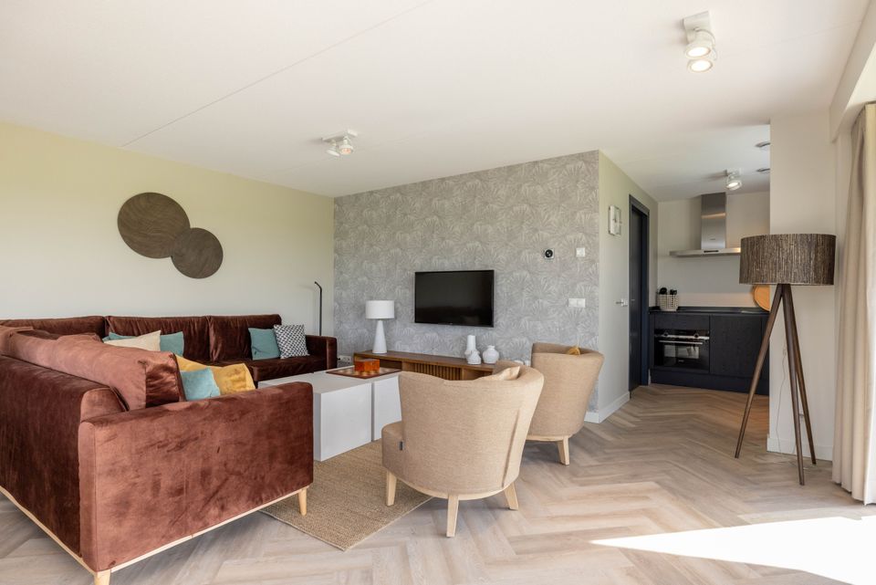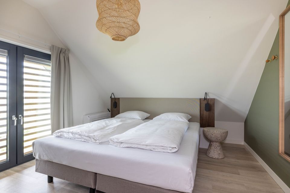 Diese brandneuen Villen im Park Wetterhaghe sind für 8 Personen geeignet. Die Villen verfügen über vier Schlafzimmer, eines im Erdgeschoss und eines mit zwei kleineren Betten (80 x 190 cm). Es gibt zwei Badezimmer, eines davon befindet sich im Erdgeschoss und verfügt über eine zusätzliche Sauna oder Badewanne. Während Ihres Aufenthaltes stehen Ihnen eine voll ausgestattete Küche, ein schön eingerichtetes Wohnzimmer sowie eine Terrasse mit Gartenmöbeln und einer großzügigen Rasenfläche zur Verfügung. Die Villen liegen mit freiem Blick auf die Pools und die darunter liegenden Grundstücke und verfügen über einen eigenen Liegeplatz. Der ideale Ort, um mit dem Boot hinauszufahren!