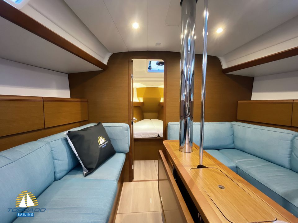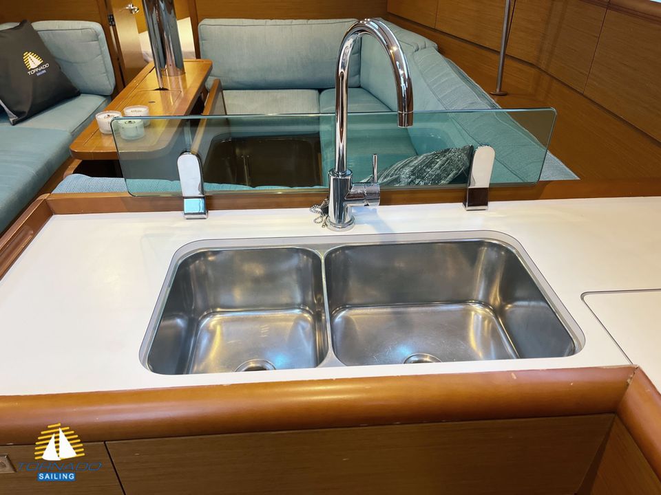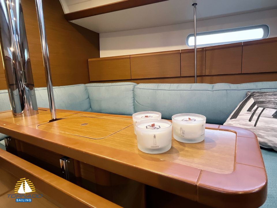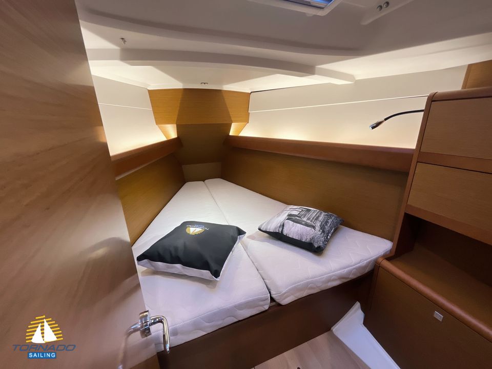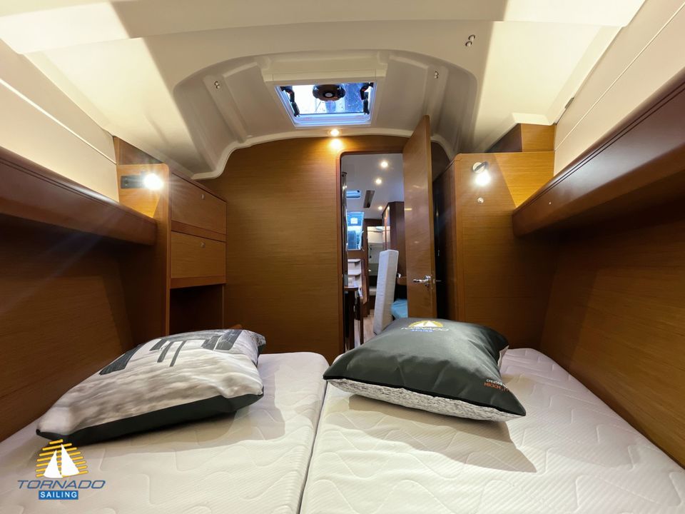 Das Boot verfügt über drei Kabinen mit sechs festen Kojen und zusätzlichen Schlafplätzen im Salon. Im Inneren erwartet Sie ein geräumiger Salon mit einer praktischen Pantry, einer elektrischen Toilette und einer Warmwasserdusche. Heizung sowie 12-V- und 230-V-Bordnetze mit Wechselrichtern sorgen für Komfort an Bord. An Deck genießen Sie ein geräumiges Cockpit und zwei Steuerräder. Autopilot, Bug- und Heckstrahlruder machen Segeln und Manövrieren entspannt.