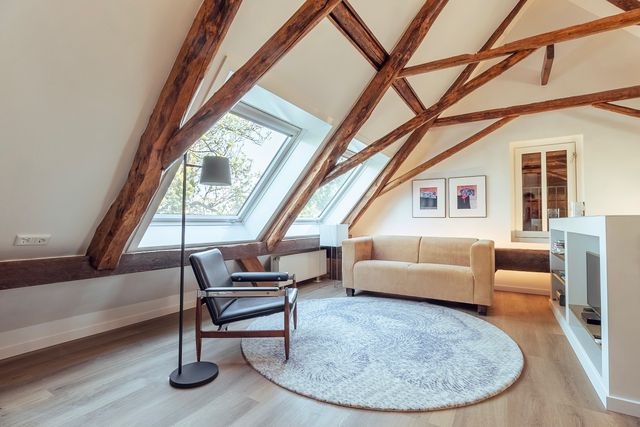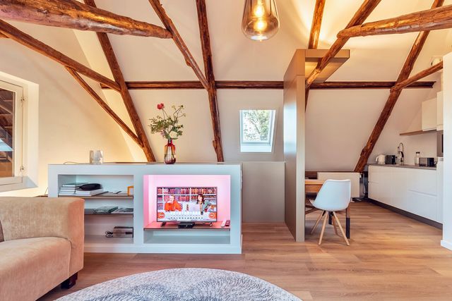 Die helle B&B-Wohnung liegt im Dachfirst dieses liebevoll renovierten modernen Bauernhauses. Es gibt ein gemütliches, modernes Wohnzimmer…