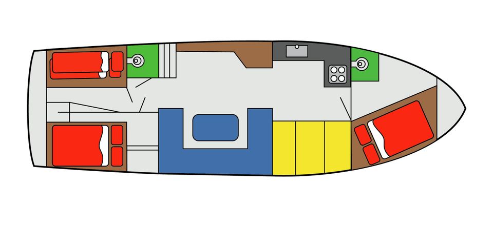 Die Korina ist eine geräumige und komfortable Motoryacht für bis zu acht Personen. Das Schiff verfügt über drei Schlafkabinen, eine voll ausgestattete Küche, eine komfortable Dusche und zwei Toiletten und bietet somit zusätzlichen Komfort an Bord. Der großzügige Salon lädt mit viel Tageslicht zu gemütlichen Sitzgelegenheiten ein. Draußen erwartet Sie ein geräumiges Achterdeck, ideal zum Entspannen.