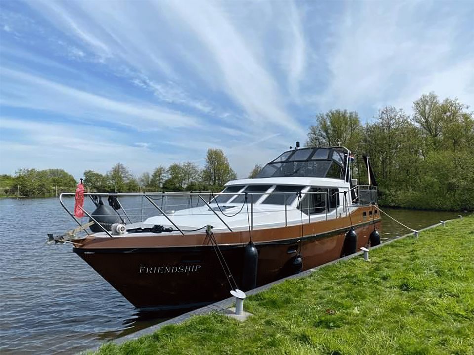Die Vri-Jon Contessa 40 (1997) der niederländischen Werft Vri-Jon DSA Yachts mit Warns als Heimathafen ist eine Luxus-Motoryacht mit geräumigem Innenraum und allen Annehmlichkeiten. Die Vorderkabine verfügt über ein Doppelbett und die Achterkabine über ein freistehendes Doppelbett mit angrenzender Toilette, Waschbecken und Dusche. Die Essecke kann in ein Doppelbett umgewandelt werden und bietet insgesamt Platz für 6 Personen. Die Yacht ist technisch hervorragend ausgestattet, inklusive Bug- und Heckstrahlruder sowie einem Raymarine-Kartenplotter für sicheres Segeln auf niederländischen Binnenwasserstraßen und dem IJsselmeer.