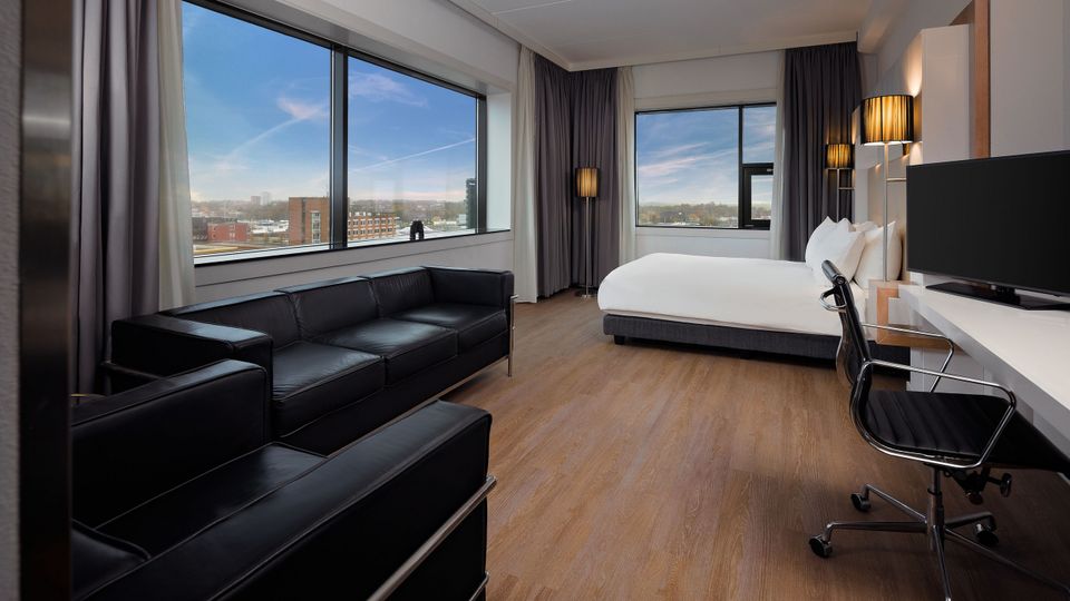 Das Vier-Sterne-Hotel liegt ideal an den Ausfallstraßen, nahe dem historischen Zentrum von Leeuwarden. Das Hotel verfügt über luxuriöse und komfortable Designzimmer. Viele Zimmer verfügen über eine Verbindungstür und sind daher sehr gut für Familien geeignet. Darüber hinaus ist Ihnen als Gast bei uns ein kostenloser Parkplatz direkt am Hotel garantiert. Das Hotel verfügt über verschiedene Einrichtungen, das Highlight ist das schöne Restaurant élevé und die Skybar in der obersten (11.) Etage. Hier ist Ihnen eine wunderschöne Aussicht auf Leeuwarden und die Umgebung garantiert! Das Hotel verfügt außerdem über ein geräumiges Frühstücksrestaurant. Im Hotel gibt es einen Fitnessraum und mehrere Tagungs- und Veranstaltungsräume. Mieten Sie ein WestCord-Hotelfahrrad und entdecken Sie die Gegend!