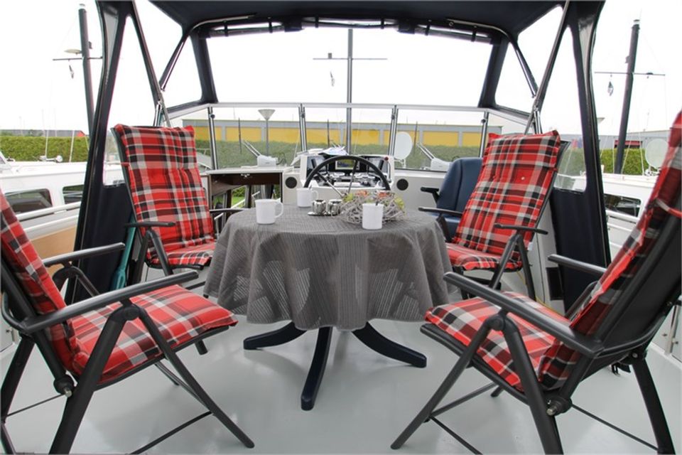 Diese Klompmaker Kotteryacht ist ein geräumiges Boot für bis zu 6 Personen. Das Boot verfügt über 3 Schlafzimmer: ein Schlafzimmer mit einem Doppelbett vorne, ein Schlafzimmer mit einem Doppelbett hinten und ein Schlafzimmer mit einem Etagenbett hinten. Dieses Boot ist beispielsweise ideal für eine große Familie oder zwei Familien. Das Boot ist leicht zu manövrieren und komplett ausgestattet. Das Boot verfügt über das komplette Kücheninventar.