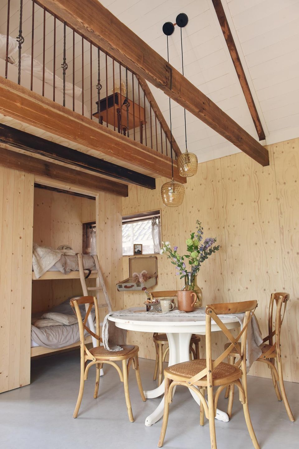 - Das Schlafzimmer/Loft befindet sich im ersten Stock und ist über eine Treppe erreichbar.