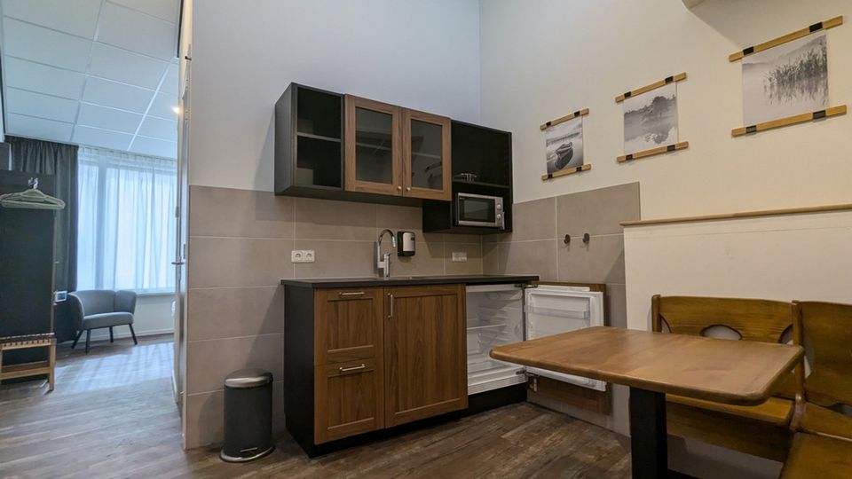 Die Küchenzeile ist nur für die Zubereitung kleinerer Gerichte (in der Mikrowelle) geeignet.