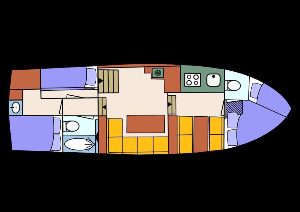Die Adrea ist eine geräumige Yacht für größere Gruppen, mit mehreren Kabinen, einem großen Salon und einem sonnigen Achterdeck. Ideal für 6 bis 8 Personen.