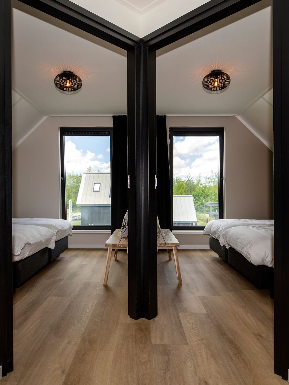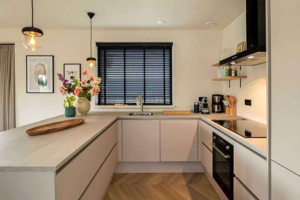 Die Villen verfügen über ein geräumiges Wohnzimmer mit Blick auf den weitläufigen Garten, das Wasser und die Wiesen. Die Einrichtung wurde elegant von Innenarchitekten gestaltet. Hier finden Sie eine gemütliche Sitzecke mit Smart-TV und einen großzügigen Esstisch. Die offene Küche gehört zum Wohnzimmer und ist mit einem Backofen/Kombi-Mikrowelle, einem Geschirrspüler und einer Kaffeemaschine ausgestattet. Die Toilette befindet sich separat am Eingang. Da die Villen im Besitz privater Eigentümer sind, unterscheiden sich die Ausstattung und Ausstattung der Villen. Das Ganze sorgt für ein persönliches Erlebnis. Die erste Etage, die über eine Treppe vom Flur aus erreichbar ist, verfügt über 4 große Doppelzimmer und 2 separate Luxusbadezimmer. Das fünfte Schlafzimmer befindet sich im Erdgeschoss und verfügt über ein eigenes Badezimmer. In allen Häusern ist ein separates Kinderbett und ein Hochstuhl vorhanden. Durch die französischen Türen im Wohnzimmer gelangen Sie in den Garten mit einer schönen sonnigen Terrasse und einem privaten Steg. Hier können Sie endlos die Ruhe und die schöne Aussicht genießen. Genießen Sie endlose Sommerabende am langen Gartentisch und nutzen Sie den Grill.