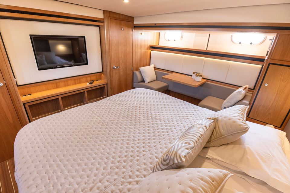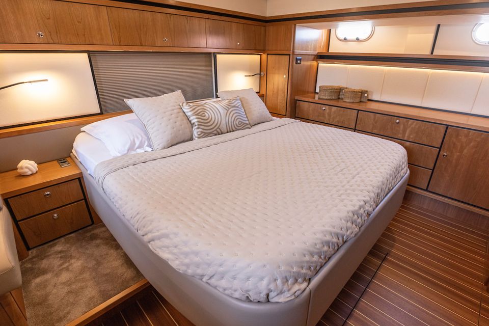 Diese neue Yacht ist sowohl für Binnengewässer als auch für das Meer sehr gut ausgestattet. Die Stabilisatoren sorgen für eine perfekte Stabilisierung auf turbulentem Wasser, was eine ruhige Fahrt unabhängig vom Wetter garantiert.