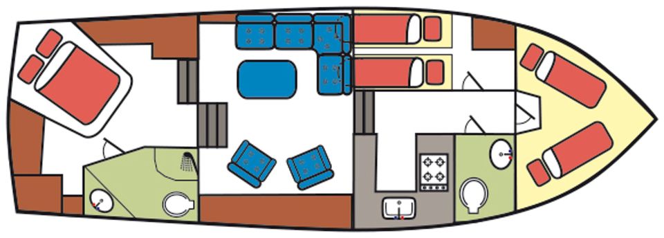 Diese robuste und angenehme Motoryacht bietet viel Wohn- und Stauraum und ist ideal für eine größere Familie. Das Schiff hat eine kompakte Größe, bietet aber dennoch Schlafplätze für 6 Personen.