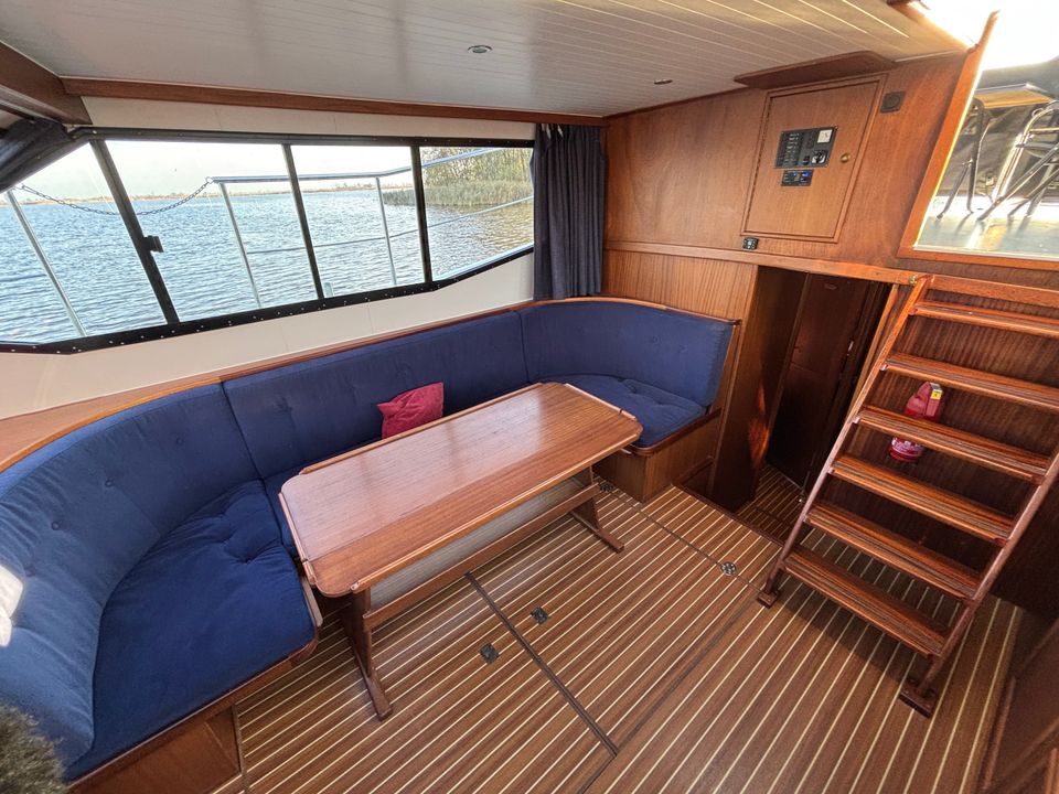 Im Salon befindet sich ein geräumiges U-förmiges Sofa. Hier können Sie gemütlich zu Abend essen oder bei schlechtem Wetter spielen. Die gepflegte Küche ist mit einem 4-Flammen-Gasherd, einem geräumigen Kühlschrank, einer Mikrowelle und einer Kaffeemaschine ausgestattet. Da es sich um ein großes Schiff handelt, eignet sich die Vri-Jon Contessa perfekt für einen Urlaub mit der ganzen Familie. Kinder haben viel Platz zum Spielen. Dank der Badeleiter ist das Boot ideal für ein erfrischendes Bad bei sommerlichen Temperaturen! Der Außensteuerstand befindet sich unter einem geräumigen Zelt. Hier können Sie bequem Platz nehmen.