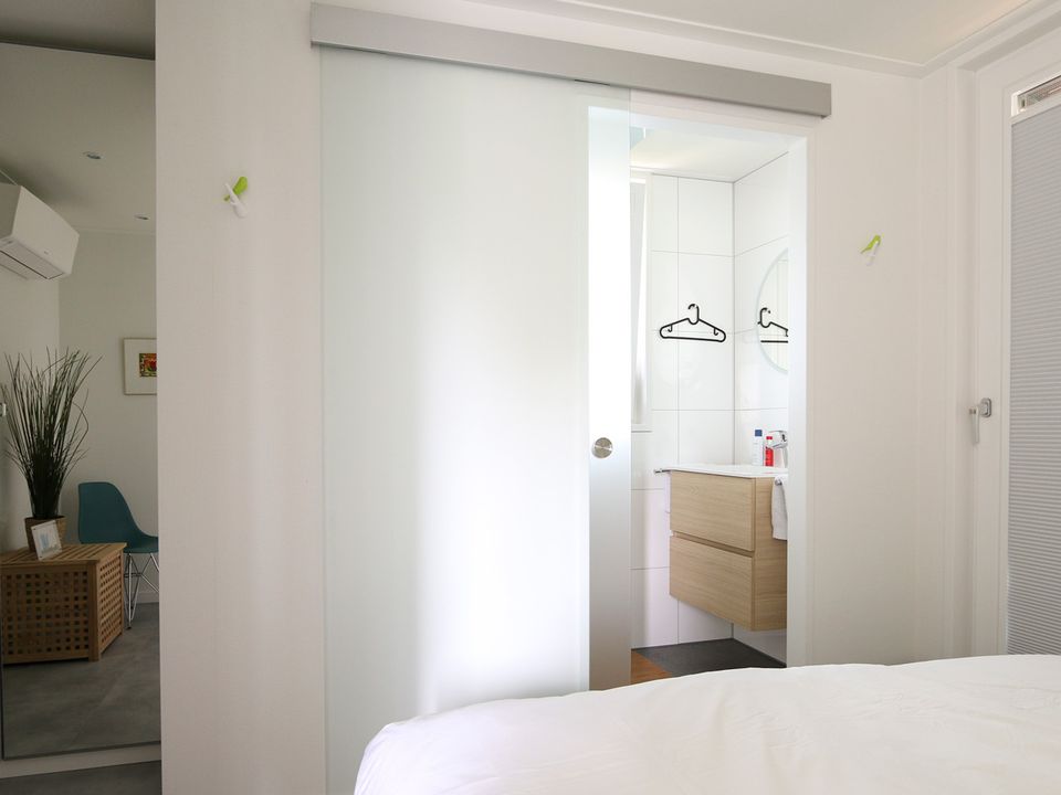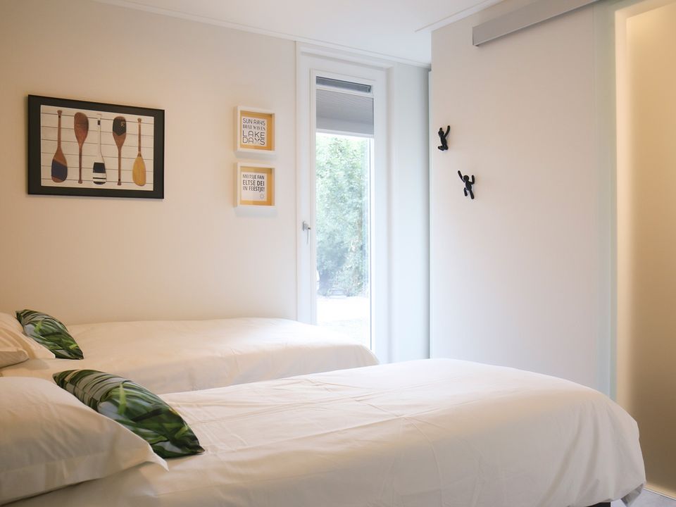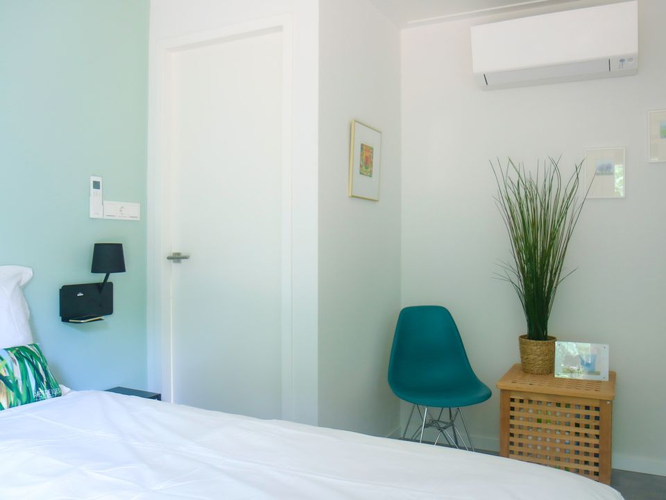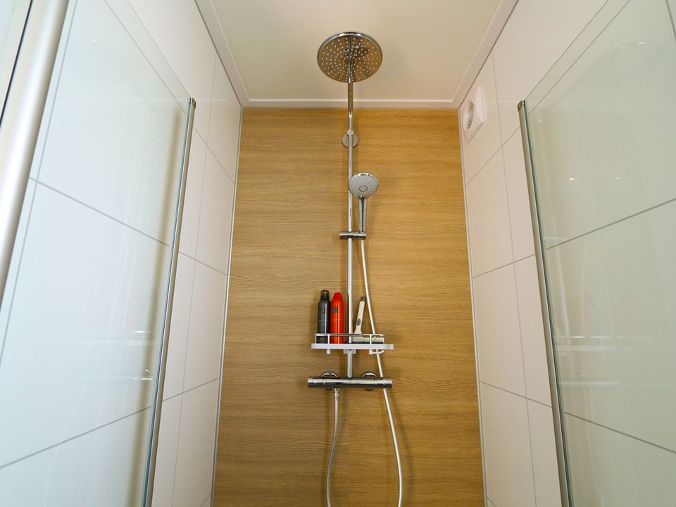 Genießen Sie einen wunderbaren Aufenthalt in dieser Ferienhütte mit Klimaanlage. Die Lodge verfügt nicht nur über zwei Schlafzimmer, sondern auch über zwei Badezimmer! Jedes Schlafzimmer verfügt über extra lange Boxspringbetten und jedes über ein eigenes Badezimmer mit Regendusche und Waschbecken. Es gibt eine separate Toilette. Im Garten gibt es auch eine Sauna. Die Nutzung ist optional buchbar. Dieser Garten liegt im Süden/Südwesten, sodass Sie die Sonne genießen können. Der Garten verfügt über ein Loungesofa, Gartenmöbel, Sonnenschirme und einen Weber-Gasgrill. Der private Parkplatz neben der Ferienhütte verfügt über eine Ladestation (Nutzung gegen Gebühr) und es gibt einen abschließbaren Fahrradschuppen. Es gibt einen geräumigen Wohnbereich und eine sehr gut ausgestattete Küche mit allen Annehmlichkeiten. Im Hauswirtschaftsraum finden Sie sogar eine Waschmaschine, einen Trockner und einen separaten Gefrierschrank.