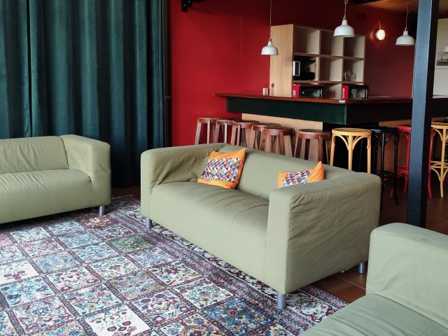 Hinter dem Cube befinden sich eine Terrasse und eine Spielwiese. Die Unterkunft verfügt über zwei Sanitäranlagen mit jeweils zwei Duschen, zwei Toiletten und drei Waschbecken. Es gibt zwei Sechs-Personen-Zimmer und vier Fünf-Personen-Zimmer mit Etagenbetten, alle angrenzend an eine Halle mit Lagerraum für Segelanzüge. Jedes Zimmer verfügt über einen geräumigen Wandschrank und drei Zimmer haben direkten Zugang nach draußen.