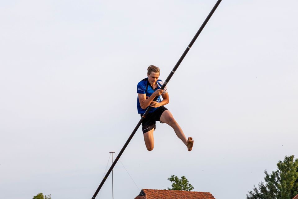 Fierljeppen is a traditional Frisian sport. During fierljeppen competitions, pole vaulters in various age groups attempt to jump as far as possible. Using a pole, they attempt to span a ditch. Each pole vaulter has three attempts, and the furthest distance counts towards the overall standings. The leader of the standings wears the Pompeblêden shirt.