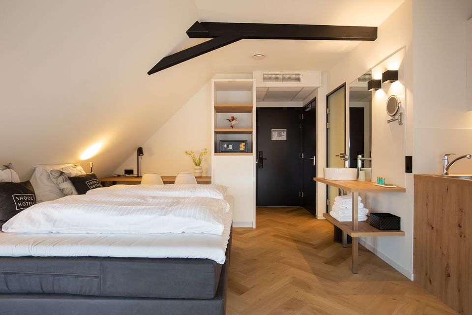 View Snoozz HotelsThis contemporary hotel is situated in a monumental building, right in the heart of the Frisian Hanseatic Elfsteden city of Bolsward. It stands on the canal, in the center and is also located directly on the Eleven Cities Route. From the hotel you can easily walk to the bakery, supermarket, cozy terraces and shops. Bolsward has a rich history and a picturesque center. It is also centrally located in the province of Friesland and is the perfect base for a few days away or a city trip in the province.