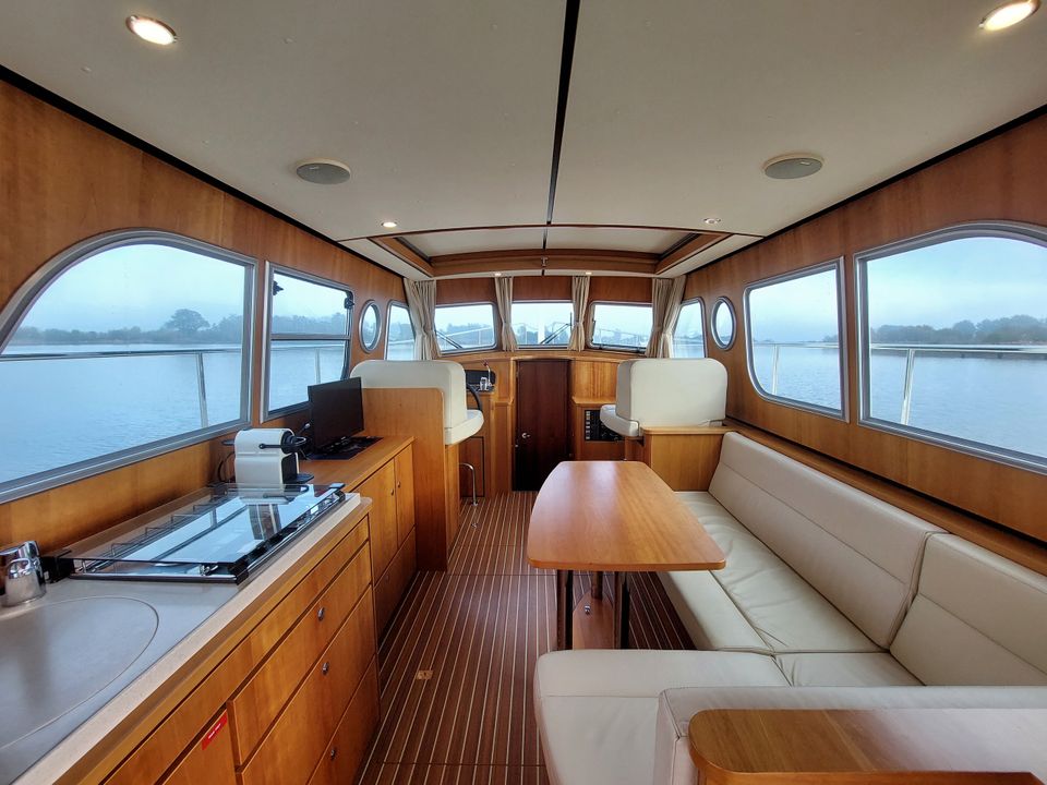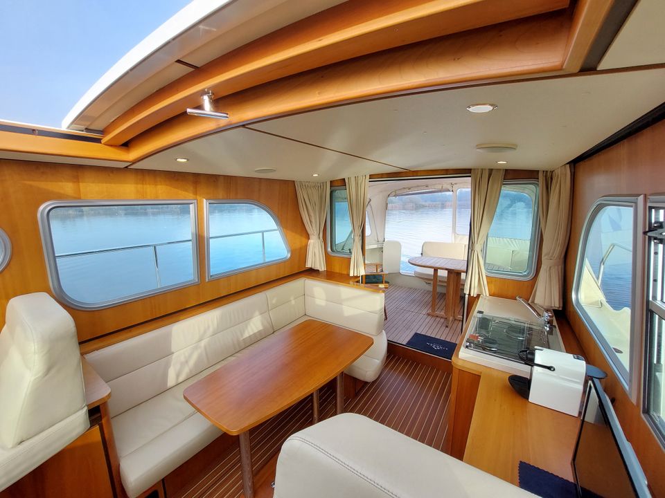 This Linssen Grand Sturdy 34.9 Sedan has many well thought-out details, including a second seat so that you, as a passenger, have an overview together with the captain and can comfortably 'sail along', an adjustable Variodeck sliding roof, heated and lockable cockpit with a comfortable leather sofa. The stylish salon with lots of (day) light finished in beautiful light colors. Extensive steering and navigation system and bow and stern thruster. Spacious bedroom with a wonderful bed and ensuite shower and sanitary room.