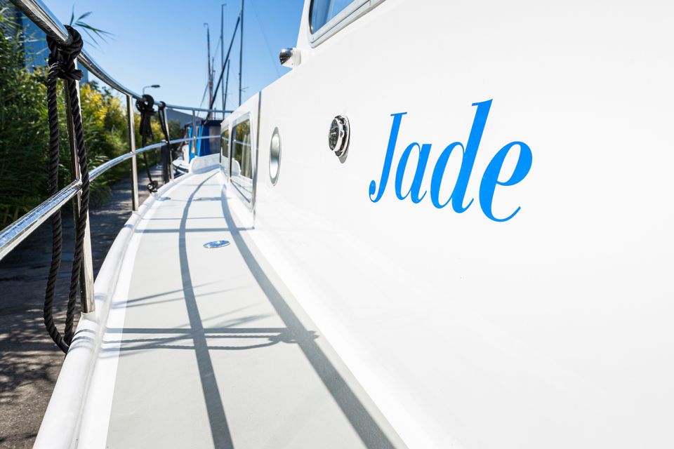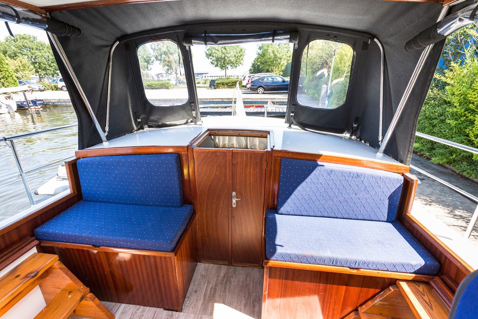 The Harderwijk Kruiser 10.50 AK is a lovely family ship with a spacious aft cabin. The cockpit is equipped with a covered wheelhouse with sliding roof so that you still feel outside in nice summer weather. The side and rear of the wheelhouse can be covered with a tent (with windows) so that you can still sail comfortably in less nice weather.