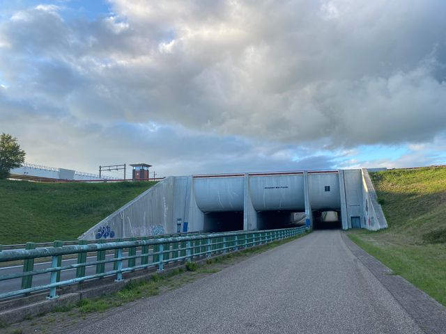 Since 1993, the A32 motorway has passed under the Mid-Fryslân Aqueduct near Grou, while the Prinses Margriet Canal remains open to shipping. The aqueduct forms an important part of the motorway between Heerenveen and Leeuwarden and is a key link in the shipping route between Lemmer and Delfzijl. In addition to the main 2x2 lane passage on the A32, there is a separate underpass on the east side for slow traffic, such as cyclists and pedestrians, between Akkrum and Grou. On the south side of the canal, the local road Leppedyk runs over the aqueduct. This road offers a unique view of the Prinses Margriet Canal and the A32 motorway. Immediately to the west of the aqueduct is the Zwolle–Leeuwarden railway line, which crosses the canal via a swing bridge. The aqueduct is accessible 24 hours a day to road traffic, slow traffic and shipping.