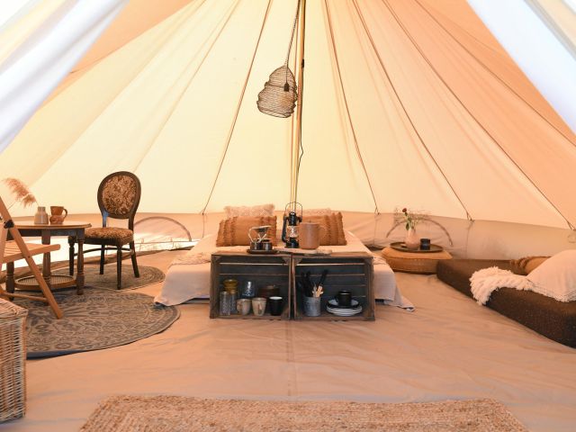 De lytse Bell tent was mooi ingericht. Comfortabele bedden en leuk zithoekje. En vooral de tenten staan op een geweldige plek met weids uitzicht. Er is een gezamenlijke buitenkeuken, lekker handig hoef je niks mee te nemen. Even verderop is een priveplek aan het water waar we lekker konden zwemmen. Wij hebben genoten en kunnen dit zeker aanraden!