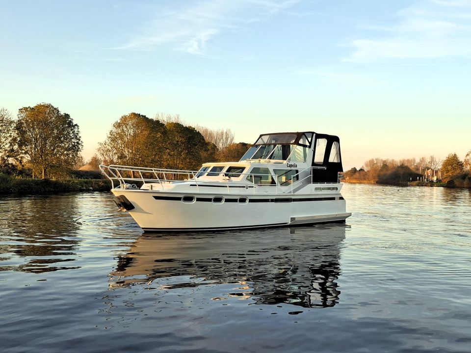 You can enjoy all the comforts on board: 230V via an inverter, a bow thruster for easy manoeuvring and a spacious tent over the aft deck, so that you can also sit outside in bad weather. The Capella combines comfort with ease of use - perfect for discovering Friesland at your own pace.