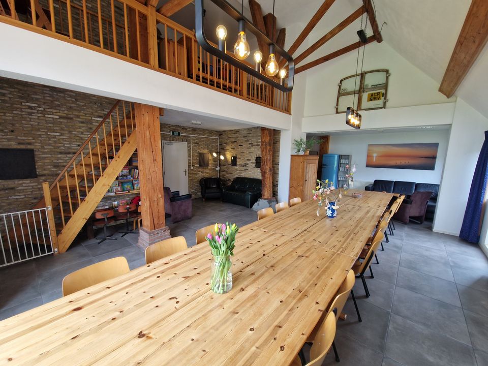 Just a stone's throw from the IJsselmeer and picturesque Hindeloopen, you'll discover a cozy and comfortable farmhouse apartment. Choose from four spacious family apartments for 5-6 people or a cozy room for two. Coming with a large group? Then you can rent the entire farmhouse as group accommodation for up to 26 people. In addition to the apartments, you'll also have access to a shared common room and kitchen. The recently renovated apartments are fresh, modern, and comfortable, while retaining the authentic character of the old farmhouse. Outside, you'll find plenty of space to relax or be active: go-karts, a ping-pong table, playground equipment, a large lawn, barbecues, a charming fire pit, and rental bicycles.