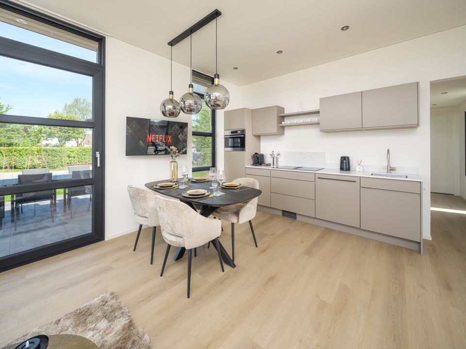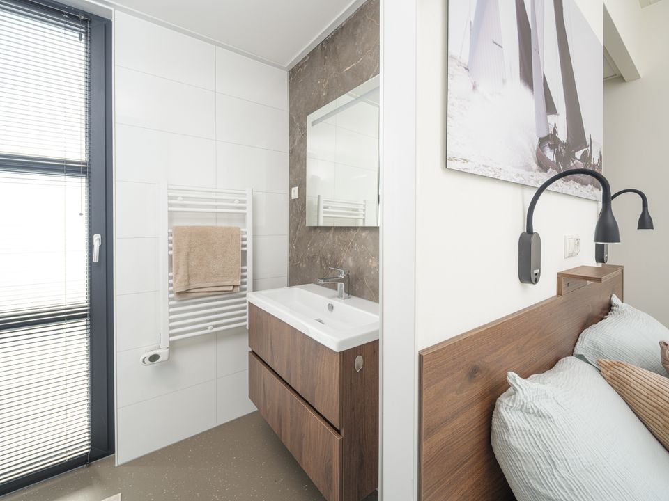The villa is situated directly on the IJsselmeer lake in a park with a marina, beach, and restaurant. You can enjoy amenities such as bicycle and e-chopper rentals, a tennis court, playground, and sports fields. Pets are welcome, so your four-legged friend can come along on holiday too!