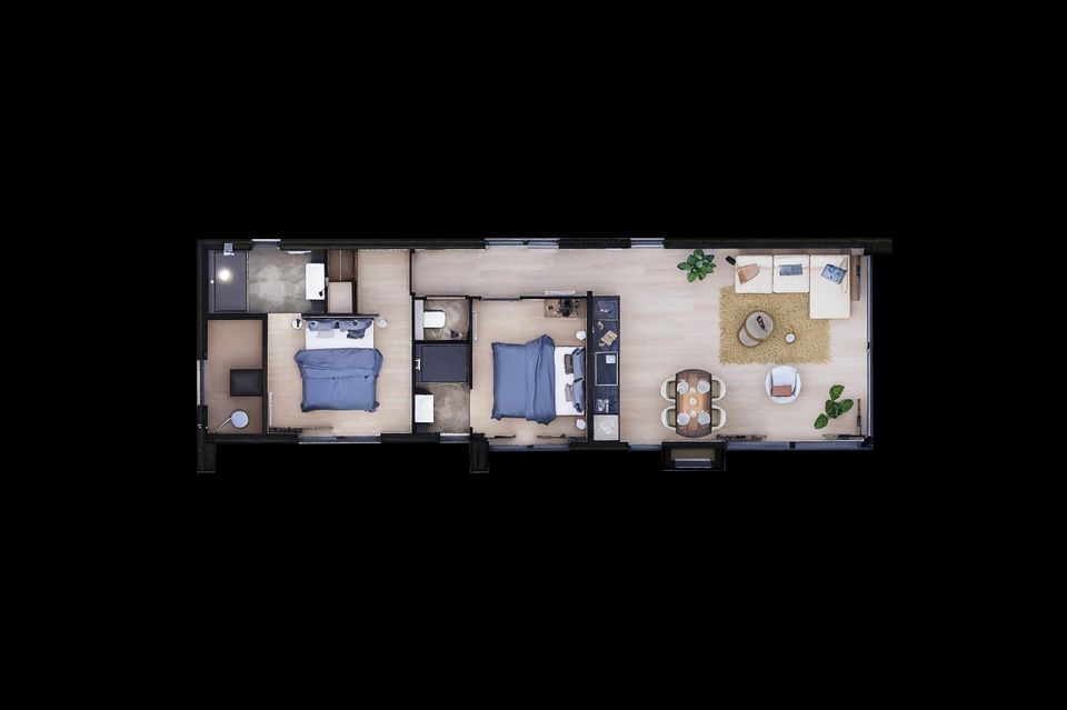 - 2 bedrooms