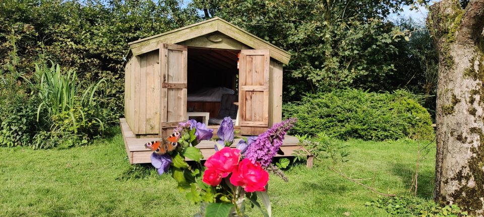 In addition to the group accommodation, you will sleep in various huts spread over the Kleine Paradijs. We have two tree houses, a red chapel, two log cabins, one garden ark and an eco house. All houses have a double bed.