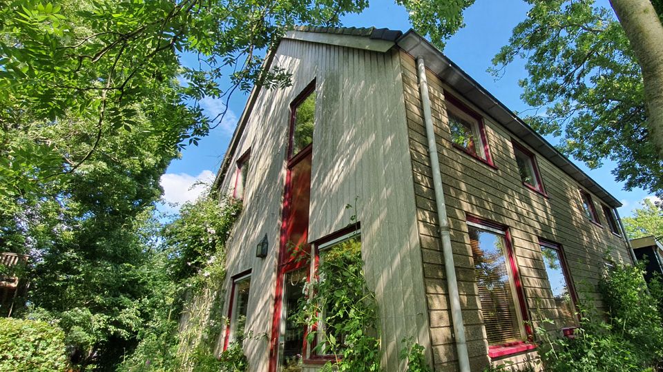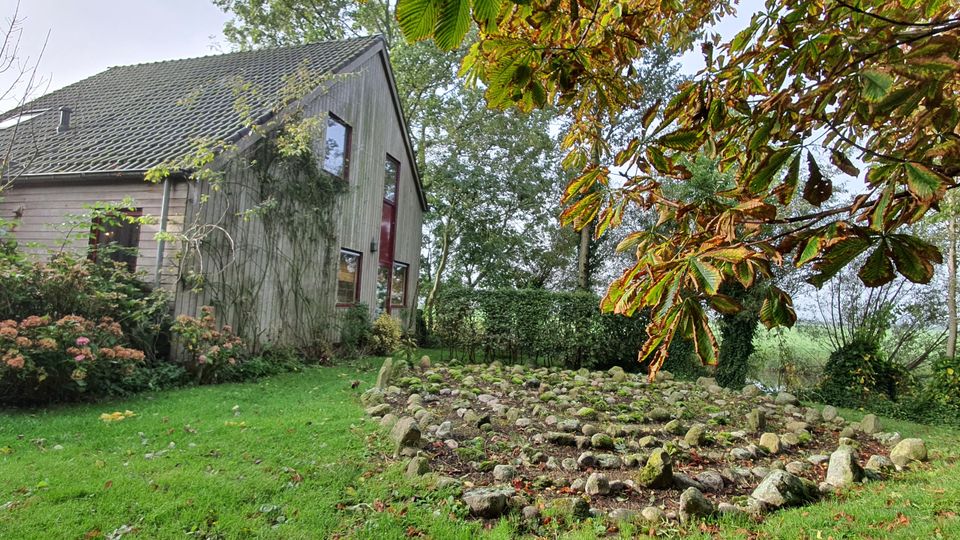 The group accommodation has a unique layout; you sleep and cook downstairs, you live upstairs! When you enter the house, you will see the doors to the shower and toilet on your right. A little further on you will find the two bedrooms, one bedroom is suitable for three people and the other bedroom is suitable for five people. On the ground floor there is also the spacious, well-equipped kitchen, including a dishwasher and oven. When you walk up the stairs, you will end up in a large living room. Here is a cozy and snug couch and a little further on is the dining room with a large table. On this floor there is also a box bed, which is suitable for two people. Finally, there is a small kitchenette upstairs where you can easily make a cup of coffee or tea. Around the house is a spacious garden with, among other things, a place where you can make a campfire.