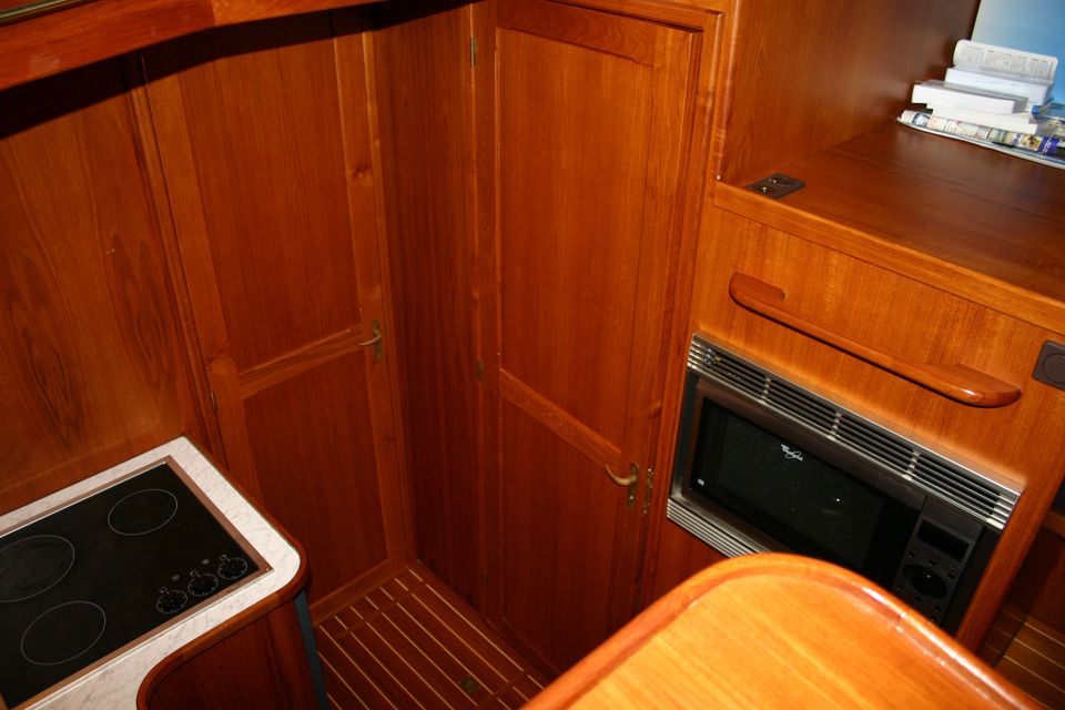 In the aft cabin you can sleep comfortably in a large double bed with slatted base. Here too there is a spacious bathroom with electric toilet, sink and a generous shower.
