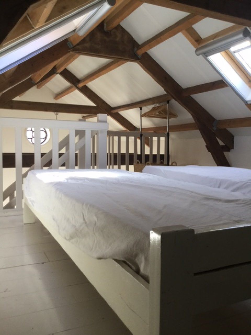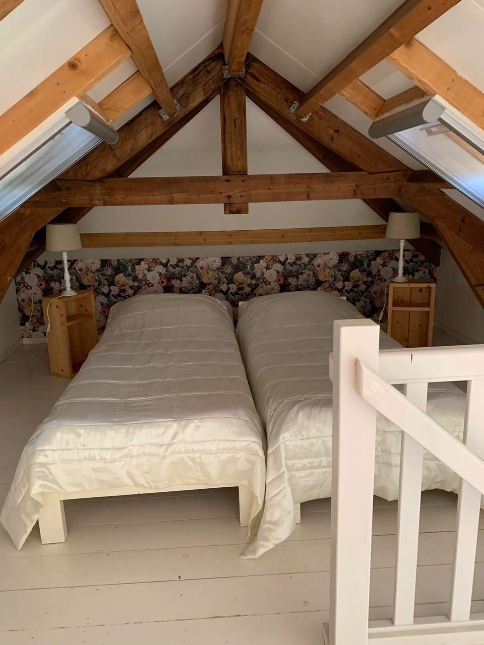 This characteristic Frisian farm with a restored coach house is located in the middle of the meadows, where you can spend the night. The apartment is suitable for 2 persons. It has its own compact seating area with television and open kitchen. The kitchen block includes a gas stove and refrigerator. The bathroom with shower and toilet is also located on the ground floor. On the first floor is the sleeping loft with 2 single beds under the authentic trusses. You have a private terrace with a beautiful view over the meadows at your disposal. Here you will find peace, natural beauty, open landscape and many meadow birds (especially the black-tailed godwit) that breed there in the spring. In summer, this area is ideal for water sports enthusiasts.