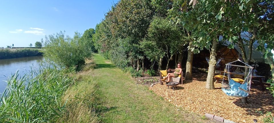 At the small-scale Camping De Finne in Friesland, located directly on the Franekervaart, you will find the perfect mix of relaxation and adventure. Ideal for families who want to play outside, for city dwellers who want to unwind in nature and for campers who really enjoy all the activities that the water-rich Southwest Friesland has to offer. We rent boats, canoes and bicycles for trips in the beautiful surroundings or to Sneek and Bolsward. Dogs are also welcome. You can catch fish from our jetties. Of course you can come to us with your own camping equipment, but we also have stylish glamping options that you can move into straight away. You can also enjoy our lovely terrace, with the icing on the cake: a super cozy pizza evening. Whether you want to relax, discover or unwind, we are more than happy to welcome you!
