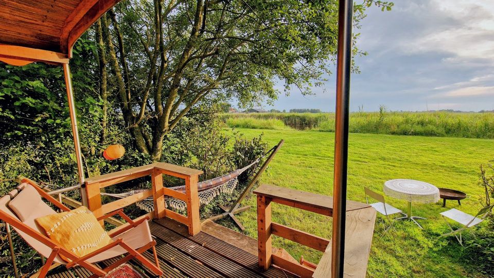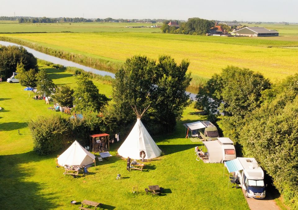 Camping de Finne is a cozy family campsite in the Frisian Reahûs, directly on the Franekervaart. Here you can relax by the water, actively explore the area or just enjoy the outdoors. Make a fire, swim, play, or fish... there is something for everyone. Our places are spacious and often have a nice wide view. If you don't feel like putting up a tent, take a look at our special accommodations, such as the Dome, yurt, tipi or gypsy wagon.