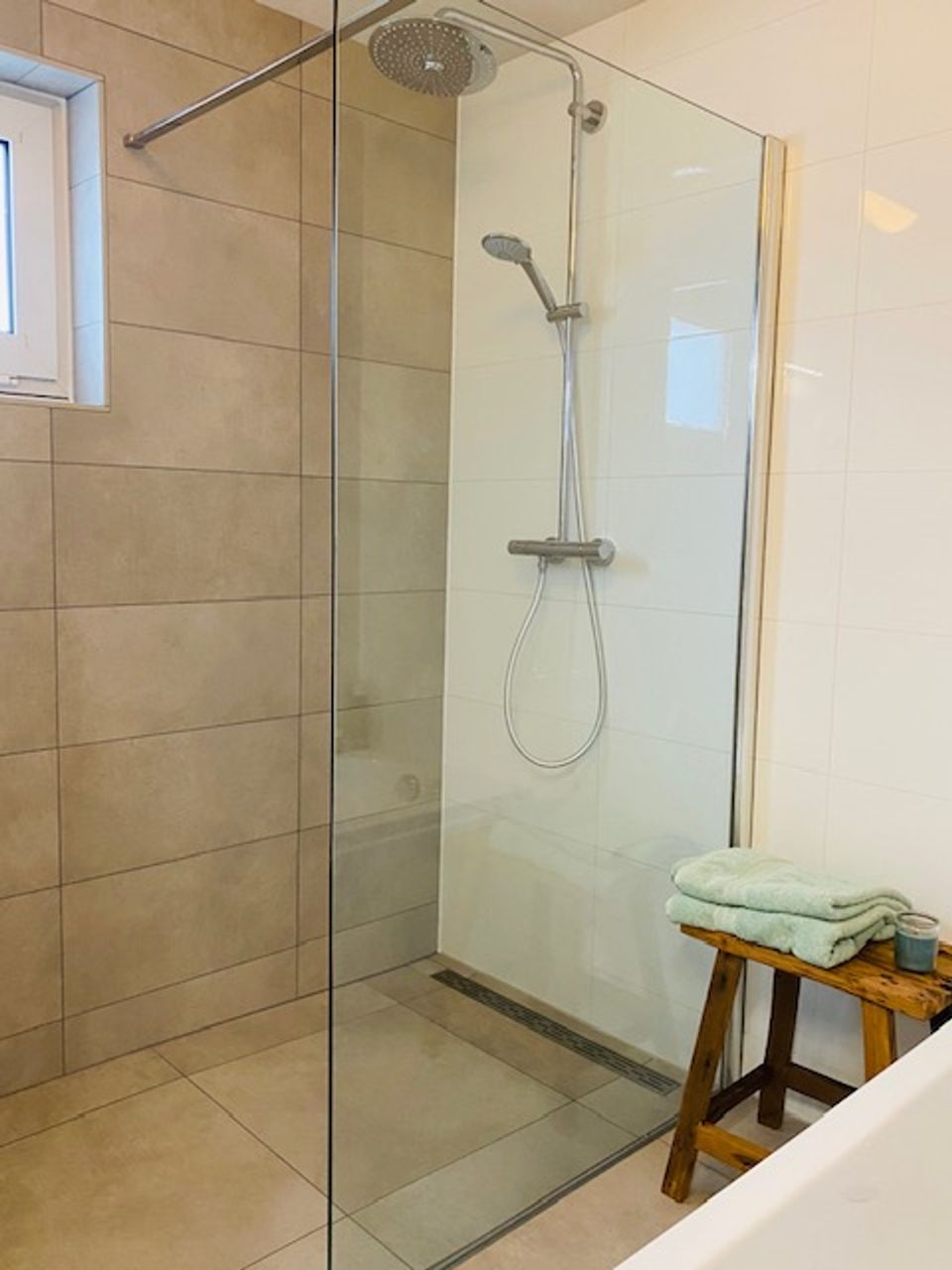 On the ground floor you will find a luxurious bathroom with a walk-in (rain) shower and a lovely bath, perfect for a moment of relaxation. There is also a separate toilet for extra comfort.